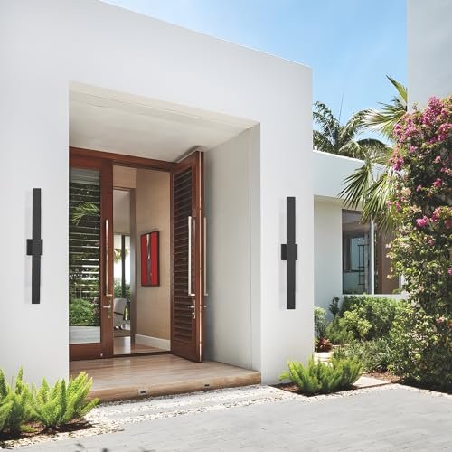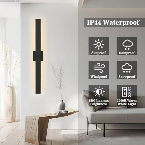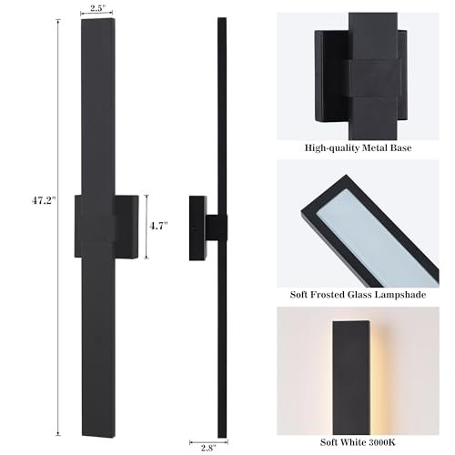 LamQee Long Outdoor Wall Lights Modern Exterior Lighting Fixtures for House, LED Linear Outdoor Wall Sconce Outside Wall Mount Lighting for Porch Patio Garage Door, 3000K 32W 1553LM, Black 47.24 Inch