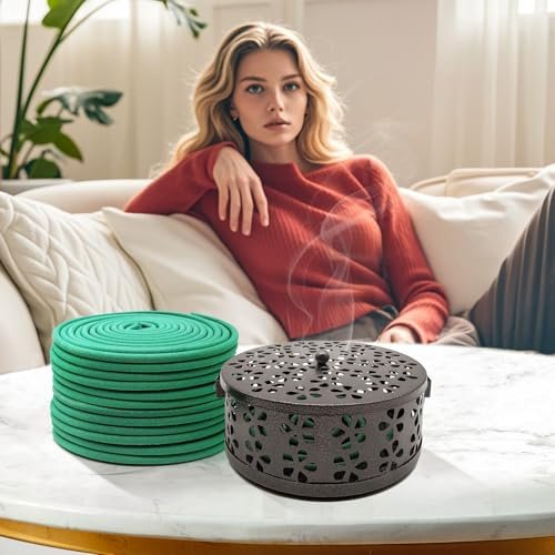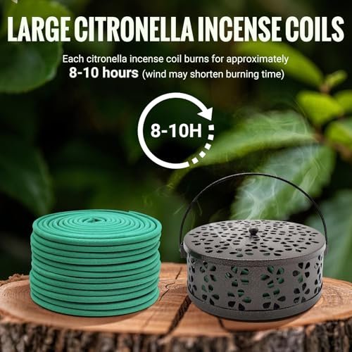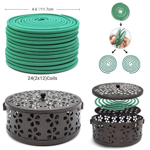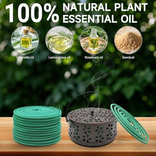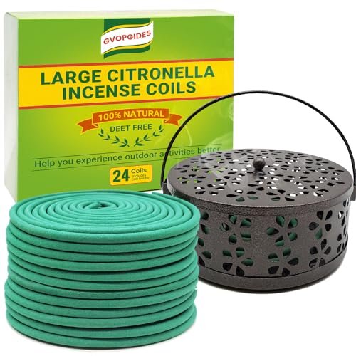 Large Citronella Incense coils and Coil Incense Holder, Made from Natural Plants, Suitable for Outdoor, Living Room, Terrace use (24 Coils and 1 Coil Incense Holder)