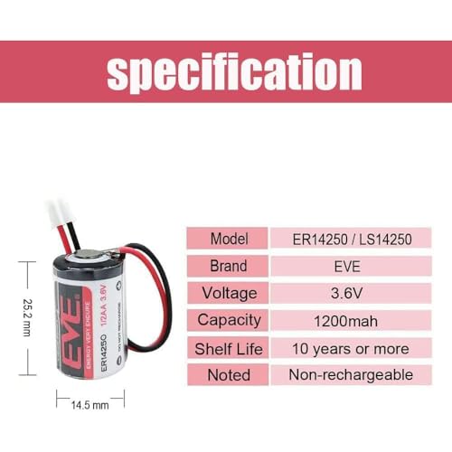 ✌Features: 1. Stable working voltage and good safety. 2. Low self-discharge rate gives this cell a 10 year shelf life. 3. Broad temperature range (-55°Cto +85°C). 4. High energy, high reliability.