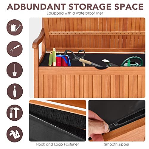 LDAILY 33 Gal Outdoor Storage Bench, Eucalyptus Multi-Functional Deck Box with 800 lbs Heavy Duty Capacity, Removable Liner, Patio Storage Bench for Garden, Poolside, Front Porch, Entryway
