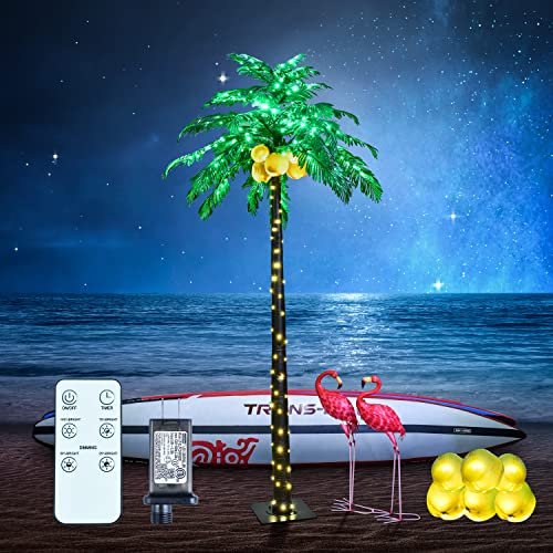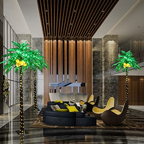 Lighted Palm Tree with Coconuts 9FT 368 LED Artificial Palm Tree Lights for Decoration Outdoor and Indoors Summer Holiday Tiki Bar Christmas Patio Pool
