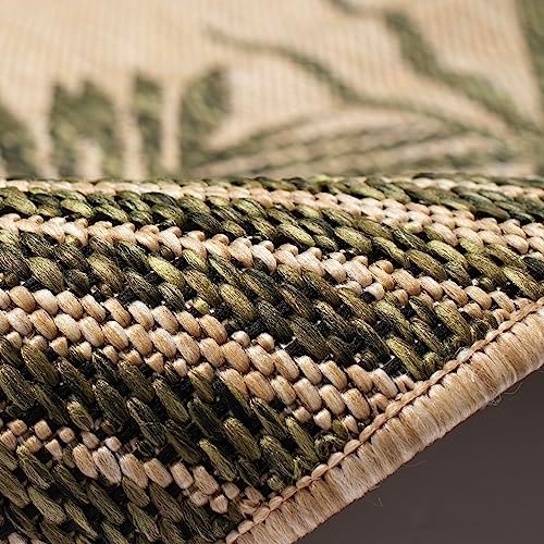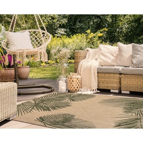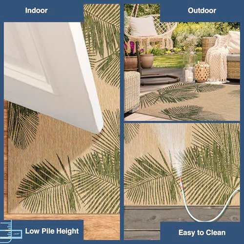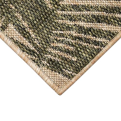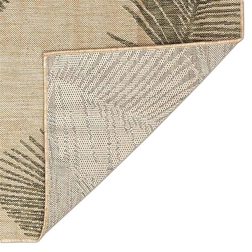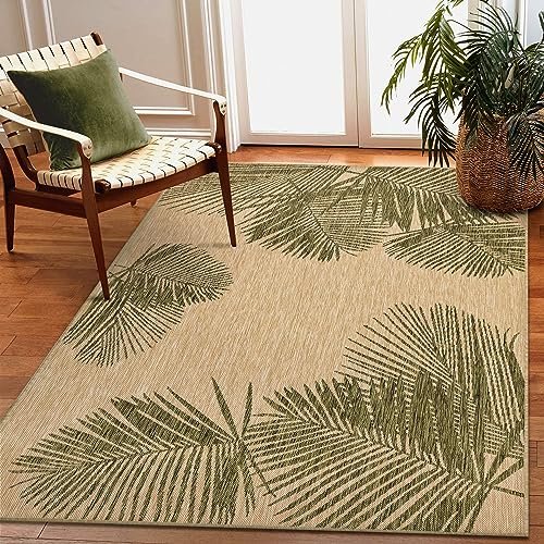 Liora Manne CARMEL Indoor/Outdoor Power Loomed Synthetic Blend Low Profile Area Rug – Transitional Tropical Botanical Leaf Decorative (Palm Green) (6’6″ x 9’4″)