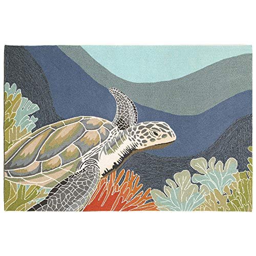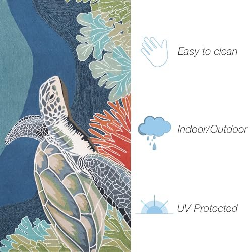 Liora Manne Ravella Indoor Outdoor Rug – Nautical Rug, Sea Life & Ocean Theme Decor, Comfortable & Durable, UV Stabilized, Stain Resistant Rug, Ocean Blue, 7’6″ x 9’6″