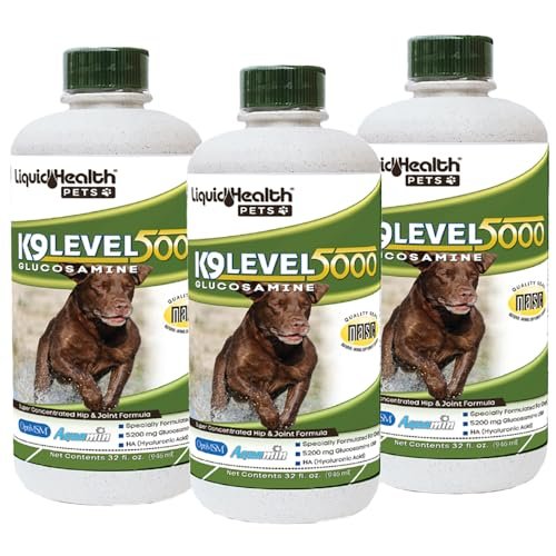 LIQUIDHEALTH Pets K9 Liquid Glucosamine Level 5000 for Large Dogs with Chondroitin, MSM, Boswellia Serrata – Dog Hip & Joint Health Vitamins for Dog Joint Pain, Pet Joint Oil Juice – USA Made (3 Pack)