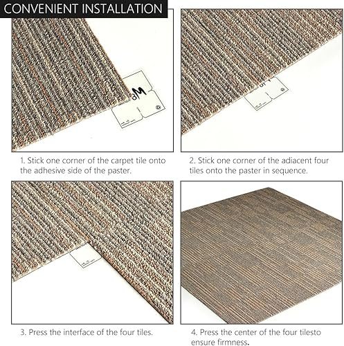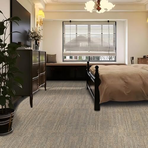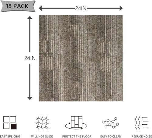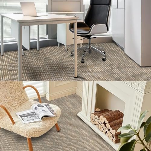 LITA Carpet Tiles Reusable 24″ x 24″ Squares Indoor/Outdoor, Khaki Polypropylene, 0.25″ Pile Height Loop Pile, Non Slip Easy DIY Installation Peel and Stick, (18 Tiles) (72 sqft/Box)