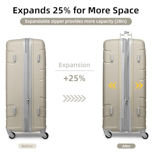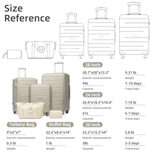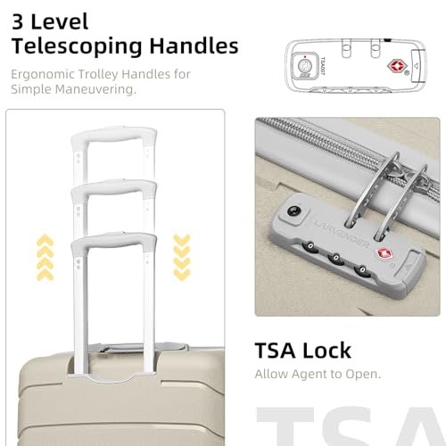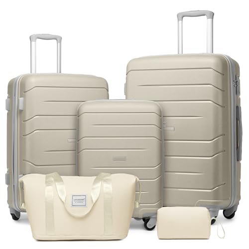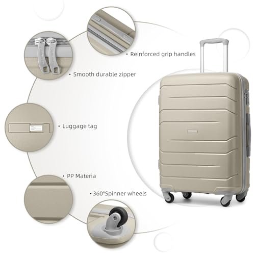 Living Source International 5-Piece Expandable Luggage Set, Hardside PP Suitcase with Spinner Wheels, TSA Lock, Sand Grey