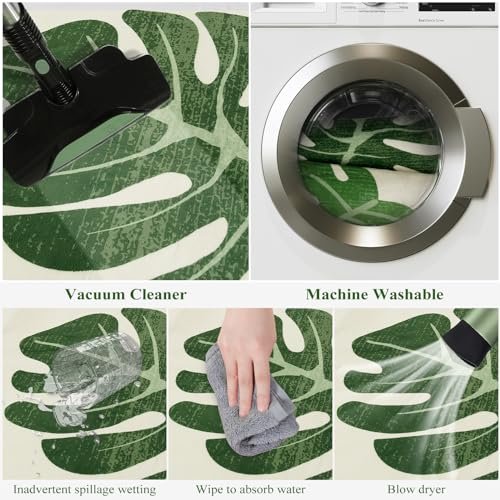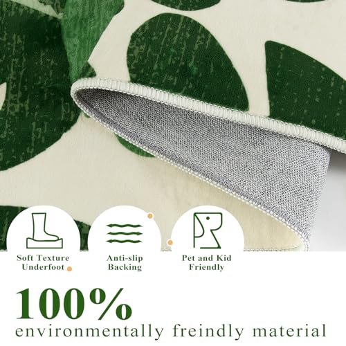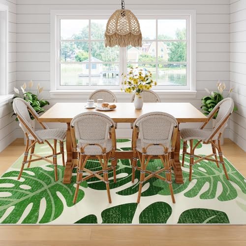 Lukinbox Leaf Indoor Outdoor Area Rugs for Living Room, 8×10 Green Washable Rug Tropical Monstera Plant Non-Slip Bedroom Rugs, Large Accent Area Carpets for Dinning Room Patio Porch