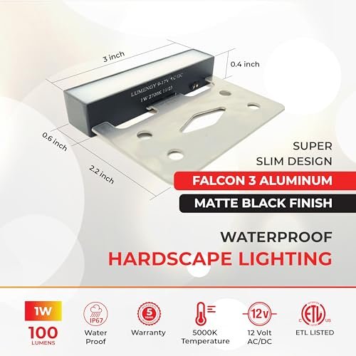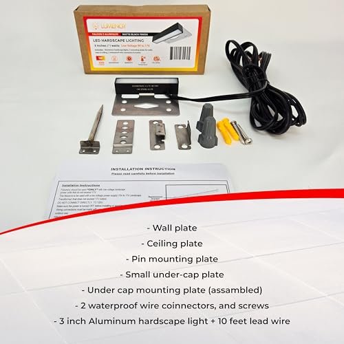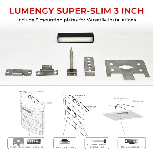 LUMENGY 3 inch 1w Super Slim LED Ambiance Hardscape Lights, 2700K Daylight, 5 Mounting Plates for Outdoor BBQ, Posts, Steps, Planters, Pavers & Walls, No Screws, Easy Installation Design V2 (6-Pack)