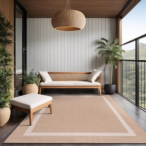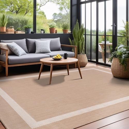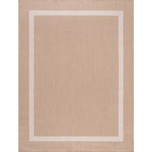 Luul Home Bordered Outdoor Rug 8×10 Washable Outside Carpet for Indoor Patio Porch Waterproof Easy Cleaning Non Shedding Area Rugs Beige 8 x 10
