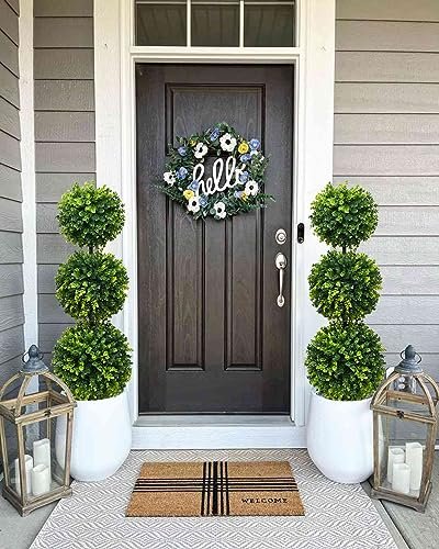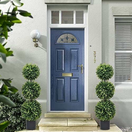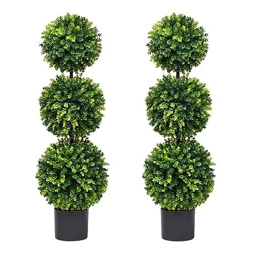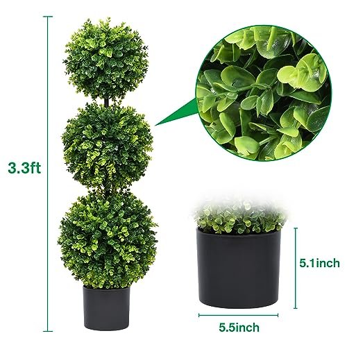 Lvydec 2 Pack Artificial Boxwood Topiary Tree, 3ft Topiary Ball Tree Potted Plants Decoration for Front Door Porch Home Living Room, Indoor/Outdoor Use