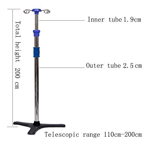 LWUWOL Medical Fluid IV Retractable Pole Stand Way Infusion Hanging Adjustable Infusion Drip Stand Stainless Steel Drip Stand Tripod Suitable for Home Care Hospital and Clinic Pet Hospital etc.