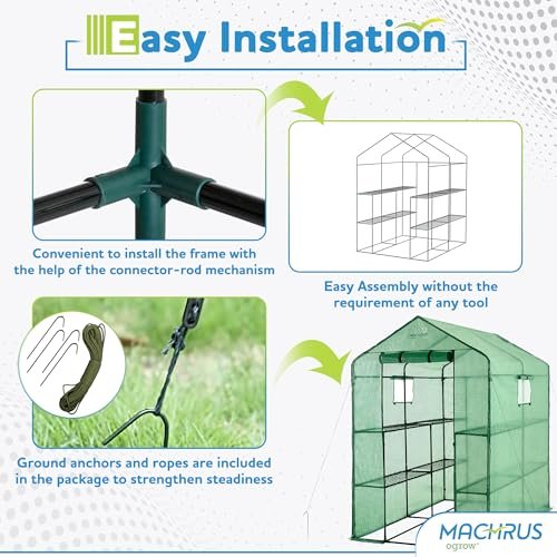 Machrus Ogrow Greenhouse Kit, Multiple Sizes – Green House, Small Greenhouses Outside, Kit Small Greenhouses Outdoors, Mini Greenhouse Outdoor.