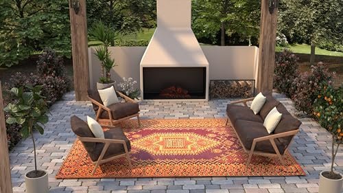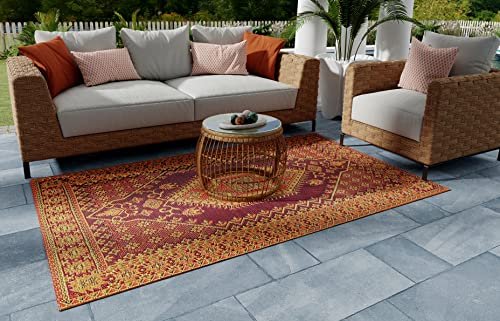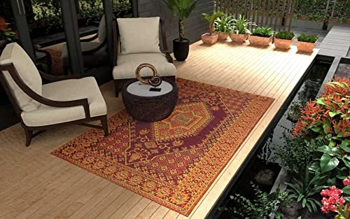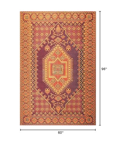 Mad Mats Traditional Outdoor Rug, Reversible Plastic Mat (6′ x 9′, Oriental Turkish – Rust)