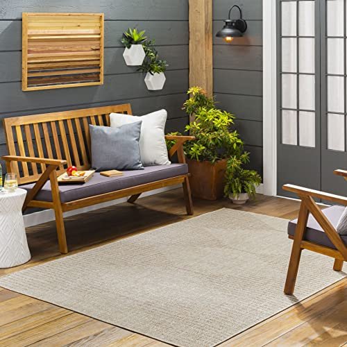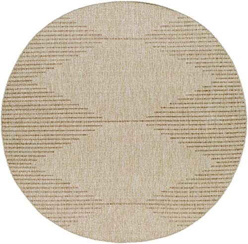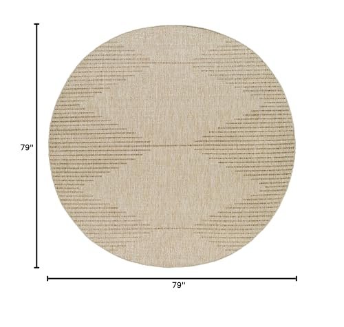 Mark&Day Outdoor Rugs, 7ft Round Okswerd Global Indoor/Outdoor Beige Area Rug, Non Shedding Brown Beige Carpet for Patio, Porch, Deck, Bedroom, Living Room or Kitchen (6’7″ Round)