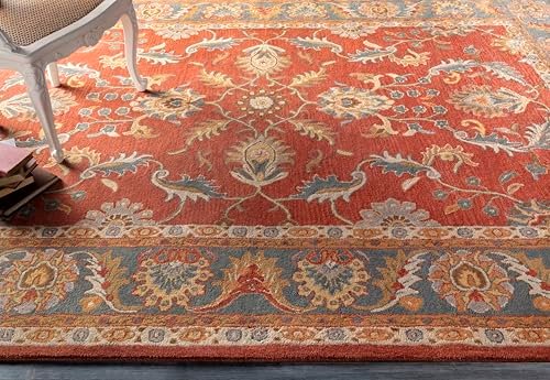 Mark&Day Wool Rugs, 10ft Round Daysland Traditional Rust Area Rug, Red Blue Beige Carpet for Living Room, Bedroom or Kitchen (9’9″ Round)