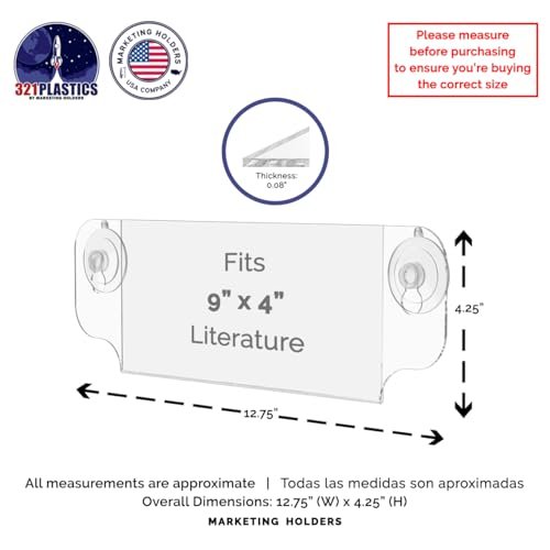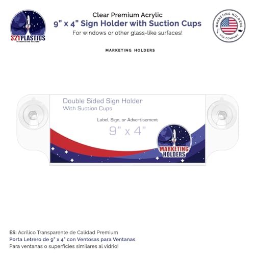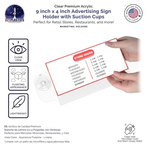 Marketing Holders 24 Pack Window Mount Sign Holder Holds 9 x 4 Inch Hours of Operation Daily Specials and Promotions Clear Acrylic Advertisement Sleeve with Suction Cups for Bars and Cafes