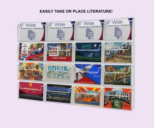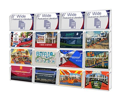 Marketing Holders Post Card Holder Acrylic 16 Pockets Holds 6″ Printed Media Hanging Hardware Included Use at Real Estate Offices Hotels Resorts Convention Centers Hotels Eye Catching Clear