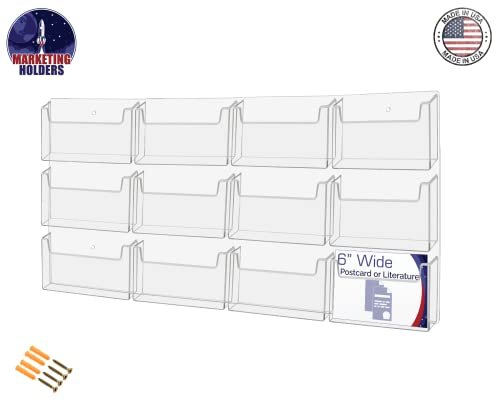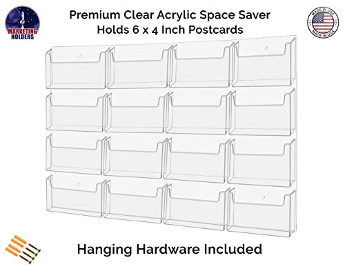Marketing Holders Post Card Holder Acrylic 16 Pockets Holds 6″ Printed Media Hanging Hardware Included Use at Travel Centers Real Estate Offices Hotels Resorts Convention Centers Eye Catching Clear