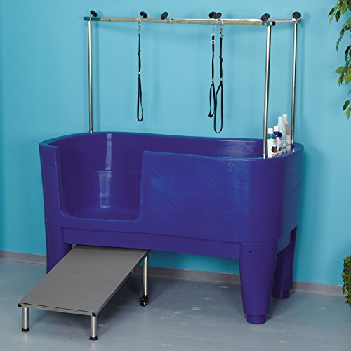 Accessories Included – Comes with a shampoo bottle holder, an overhead grooming arm, two grooming loops and a raised tub rack for grooming smaller dogs