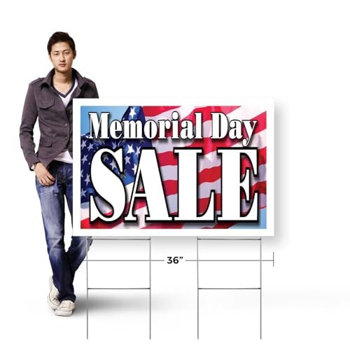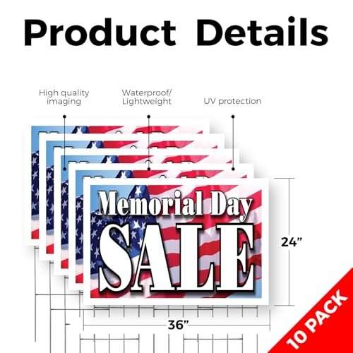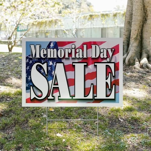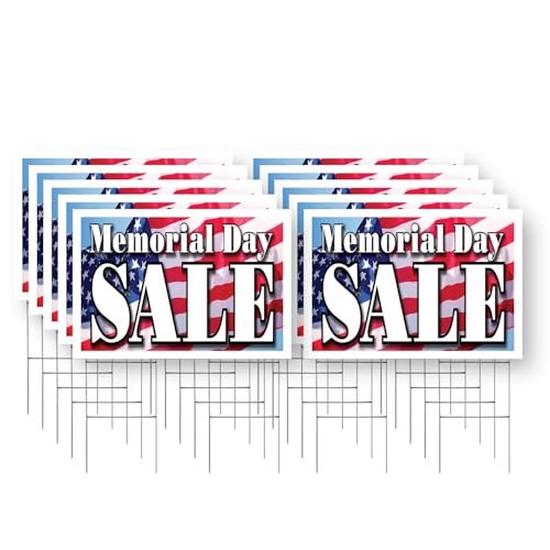 Memorial Day Sale Yard Sign 10 Pack of 24 Inch x 36 Inch Double Sided Weatherproof Heavy-Duty Plastic with Stake | Patriotic Promotions, Retail Discounts, Event Marketing | Made in USA