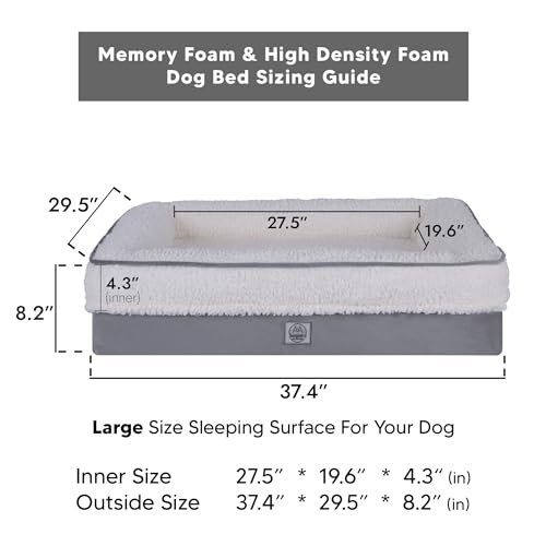 Memory Foam Dog Bed for Large Dogs. Waterproof Dog Sofa Bed Large, Supportive Foam Pet Couch Bed with Removable Washable Cover with Waterproof Cover and Non Skid Bottom, Gray