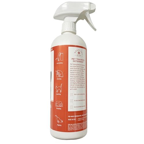 Stop Unwanted Pet Behaviors Fast | Powerful deterrent spray that helps prevent cats, dogs, and other pets from scratching furniture, marking territory, and accessing restricted areas indoors and outdoors. Achieve a more peaceful home with consistent use