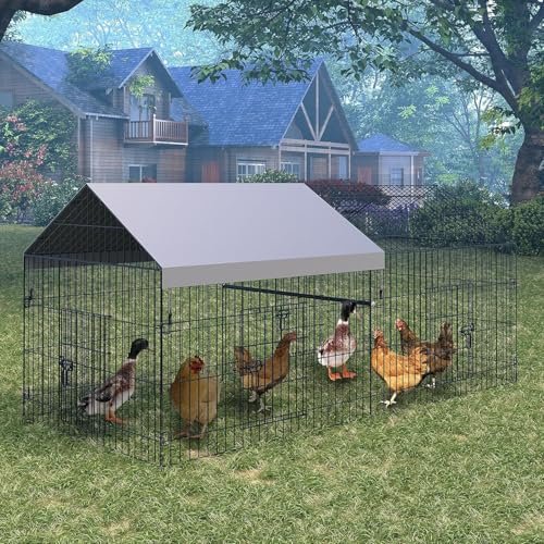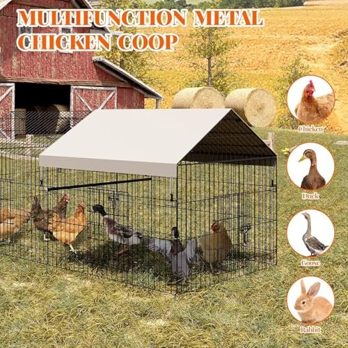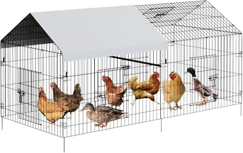 Metal Chicken Coop 86″ L x 40″ W x 40″ H Chicken Run with Waterproof Cover Portable Poultry Cage Walk in Hen House, Enclosure Chicken Pen Crate Pet Playpen Exercise Pen for Duck Hen