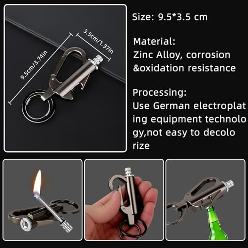 【3 in 1 Permanent Match Lighter】This creative combination of unlimited matches and a keychain beer bottle opener is not only a practical outdoor survival tool, but also an exquisite carry-on equipment. NOTE: FOR TRANSPORTATION SAFETY REASONS, THE LIGHTER DOES NOT CONTAIN FUEL AND NEEDS TO BE FILLED WITH FUEL BEFORE USE.