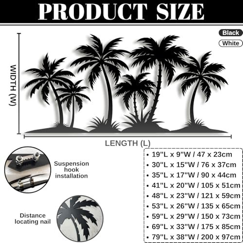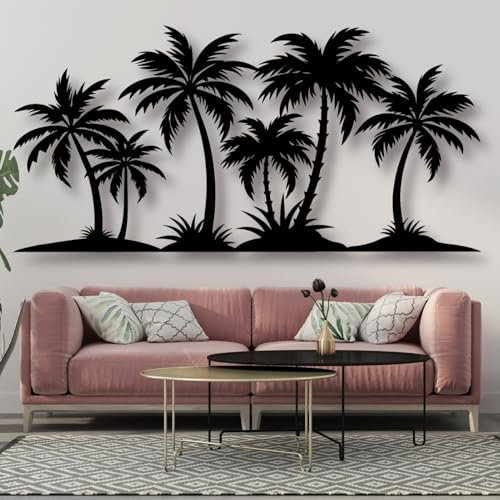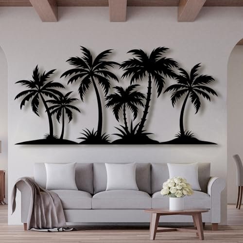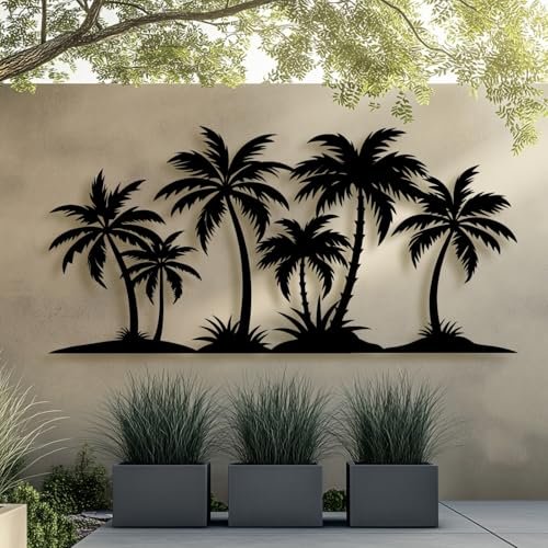 Metal Palm Tree Wall Decor,Metal Palm Tree,Palm Tree Metal Wall Art,Tropical Metal Wall Art,Beach Wall Decor,Coastal Metal Wall Art,Palm Tree Metal Wall Decor (style 1,black,41″L x 20″W/105 x 51cm)