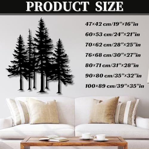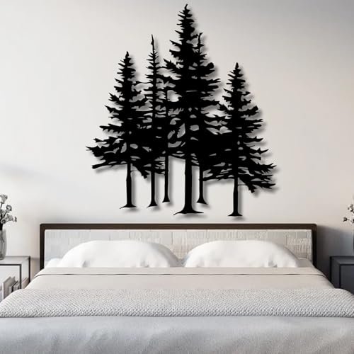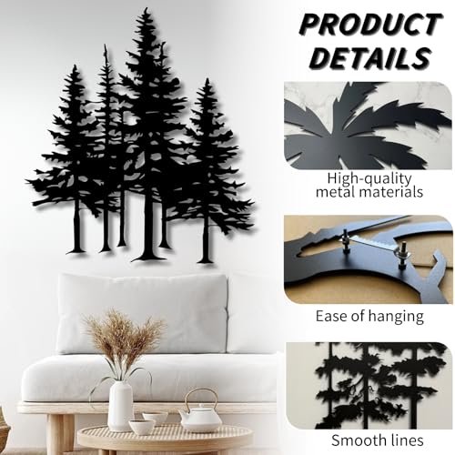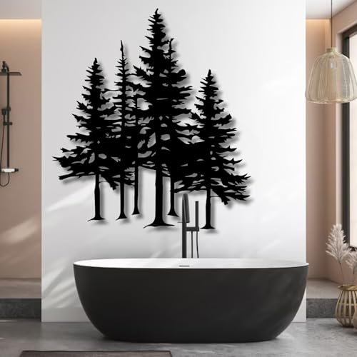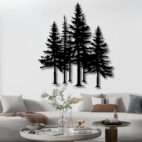 Metal Pine Tree Wall Art,Pine Tree Decor,Wall Decorations for Living Room,Bedroom,Nature Forest Metal Decor(Black, 30″×27″)