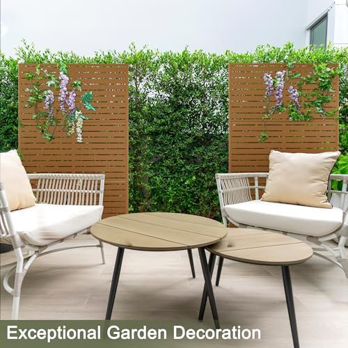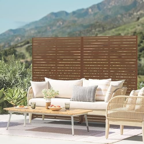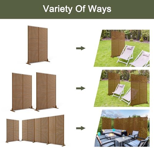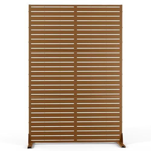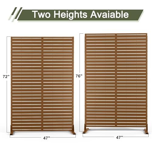 Metal Privacy Screen Outdoor Privacy Screen 72″ H×47″ W, Freestanding Decorative Privacy Screen for Balcony Patio Lawn Garden, Privacy Fence Privacy Panel-Brown&Louvered