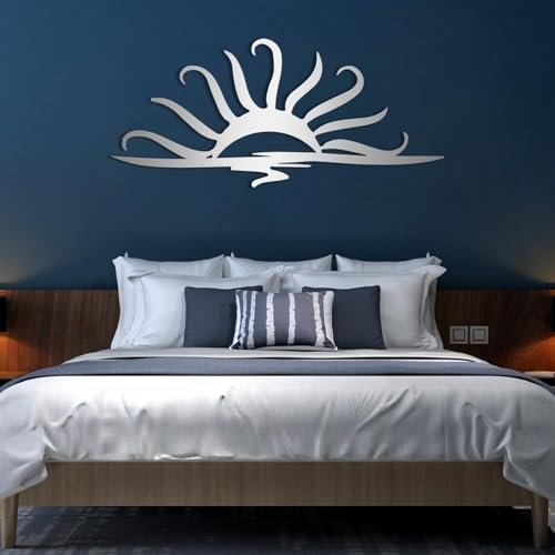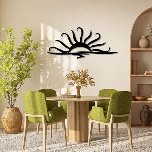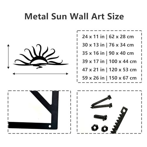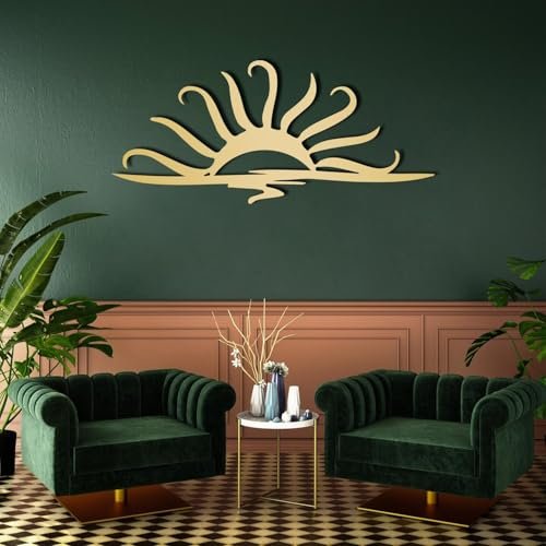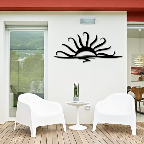 Metal Sun Wall Art, Metal Sun Wall Decor Outdoor, Sunrise Metal Wall Art, Metal Wall Decor, Sunburst Wall Decor, Sunrise Decor, Wall Hangings for Bedroom, Living Room, Garden (Gold, 39x17in|100x44cm)