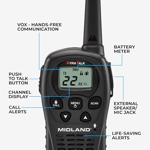 Midland – LXT500VP3, 22 Channel FRS Walkie Talkies with Channel Scan – Extended Range Two Way Radios, Silent Operation, Batteries Included (Pair Pack) (Black)