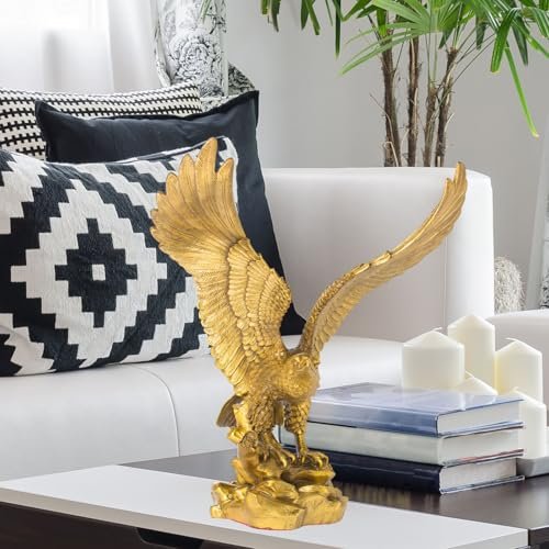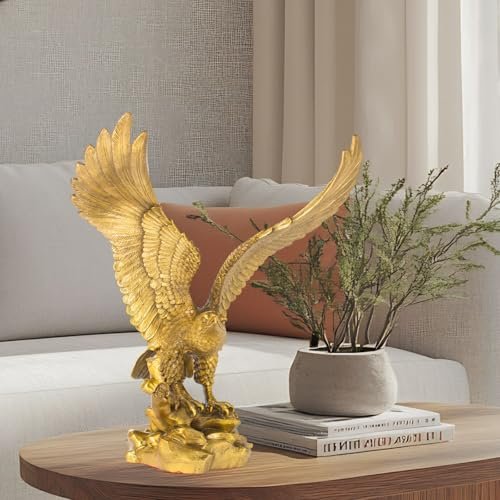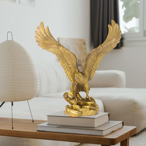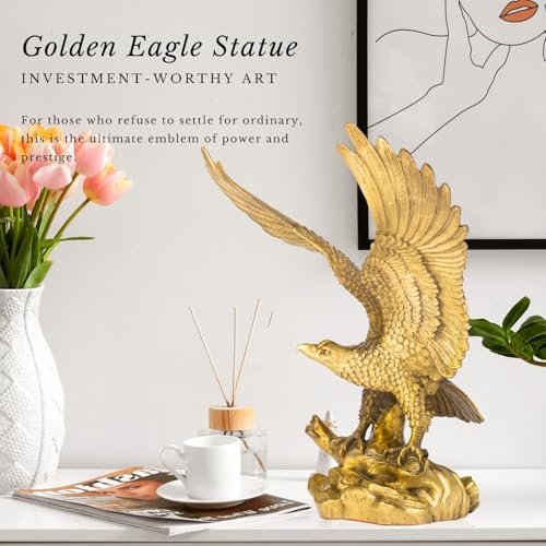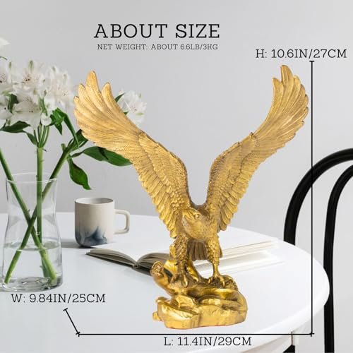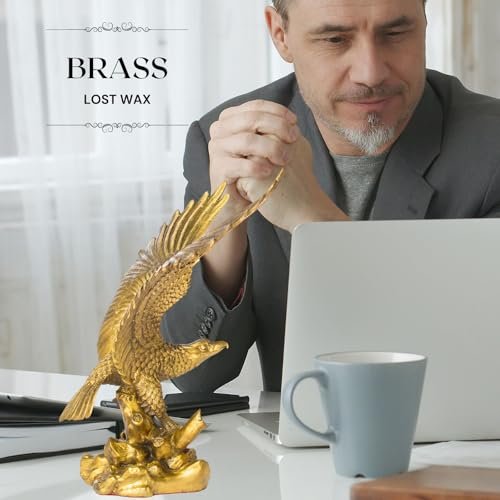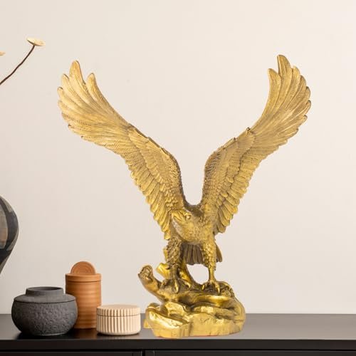 MILY-ART Bronze Eagle Sculpture, 10.6″ Golden Eagle Statue Unfurling Its Wings, Brass Eagle Ornaments, Modern Home Office Figurine Decor Desktop Decoration