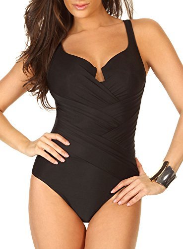 Miraclesuit Women’s Plus Size Swimwear Solid Escape Underwire Tummy Control One Piece Swimsuit, Black, 18W