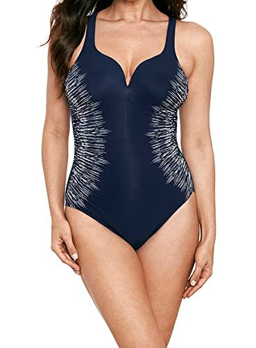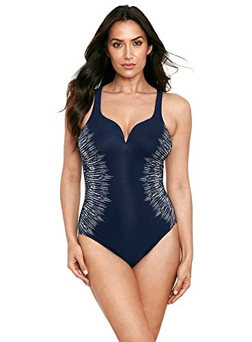 Miraclesuit Women’s Silver Shores Temptress Tummy Control Soft Cup One Piece Swimsuit, Midnight Blue/White, 10