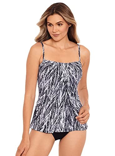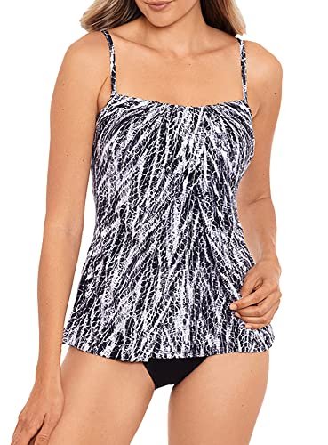 Miraclesuit Women’s Swimwear Chevron Python Jubilee Soft Cup Adjustable Strap Tankini Top, Silver Grey, 8