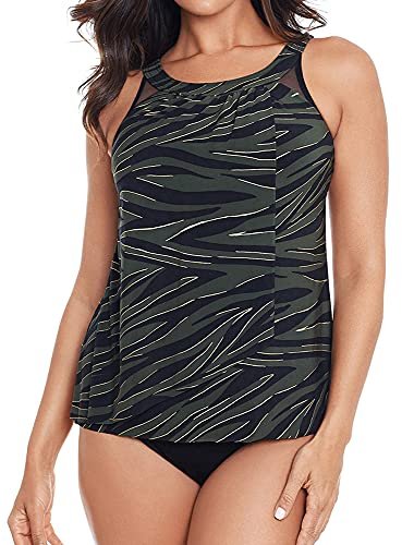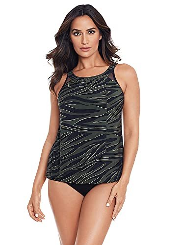 Miraclesuit Women’s Swimwear Sebra Ursula Hidden Underwire Mesh Detail Tankini Bathing Suit Top, Olivetta, 10