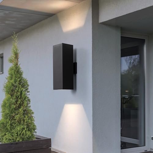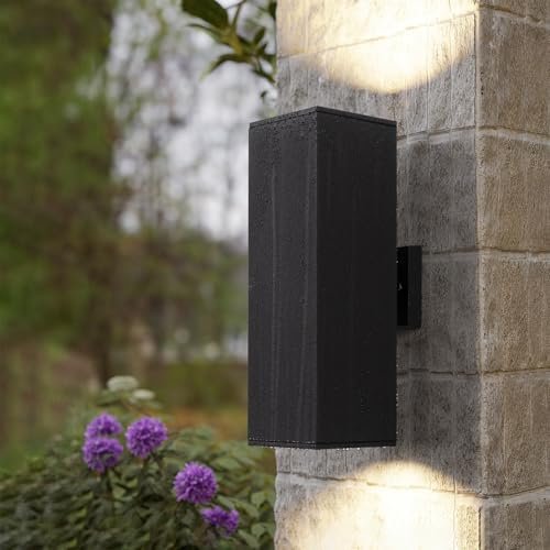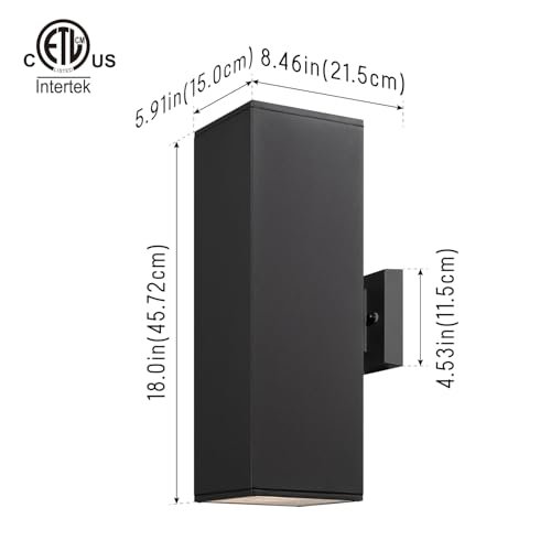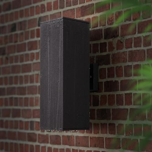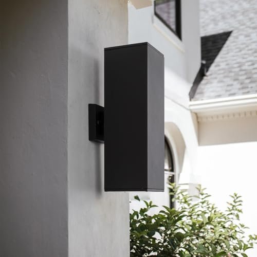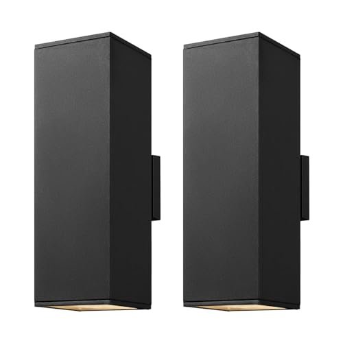 mirrea Modern Outdoor Porch Light Patio Light in 2 Lights with Aluminum Rectangular Tube and Tempered Glass Cover Waterproof Wall Sconce 2 Pack (Matte Black 18″)