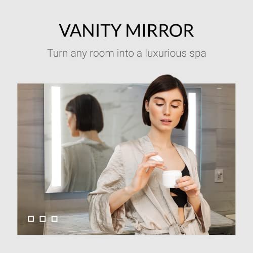 Mirrors & Marble Rectangle LED Vanity Mirror (36″ x 40″), Front Lighted Modern Anti Fog Glass for Bathroom, Bedroom, Gym, Wall Mounting Home Décor Glass for Bathroom for Over Sink, Entryway