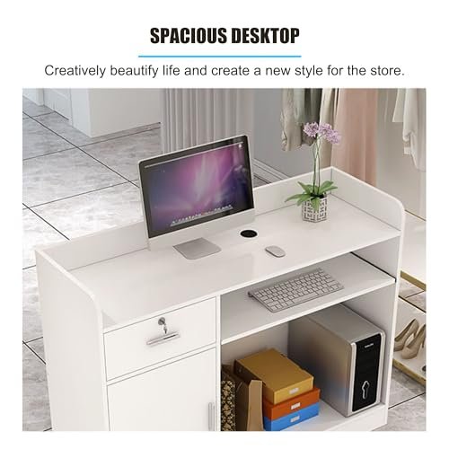 Modern Reception Desk with Counter, Front Desk Checkout Counter Table Reception Room Front Desk, Retail Counter for Checkout, for Salon Lobby Shop Reception Room Checkout Office(Black,100 * 42