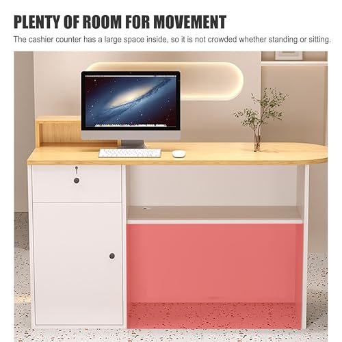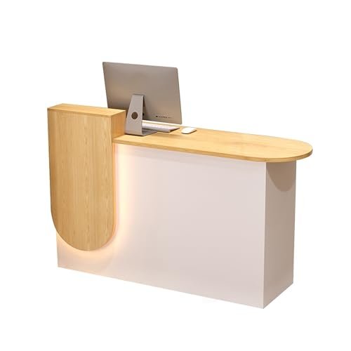 Modern Small Reception Desk with Counter, Front Desk Reception Counter, with Transaction Counter & Storage Lockable Drawer with LED Light for Lobbies, Salons, Retail, Home Offices, Reception