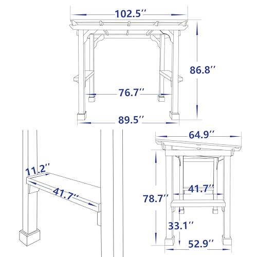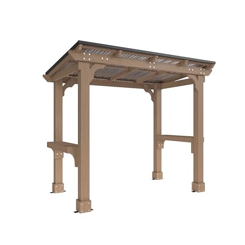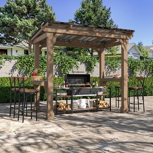 MUPATER 8 x 5 FT Outdoor Wooden Grill Gazebo with Sloping Metal roof, Heavy Duty BBQ Gazebo, Cedar Frame Pavilion with 2 Side Storage Shelves, BBQ Canopy for Patio, Lawn, Garden, Deck