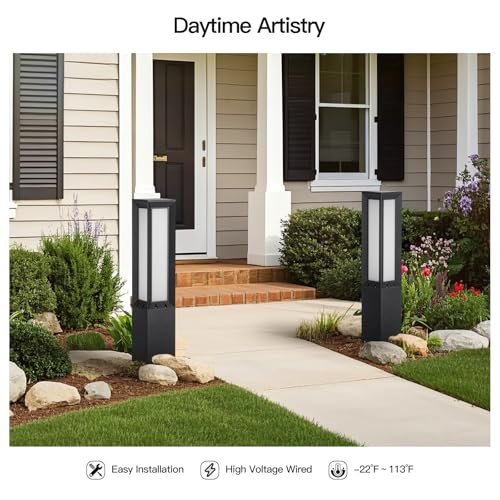 MVBT Outdoor Landscape Lighting, 32 in IP65 Waterproof Driveway Lights, 3000K led Pathway Light for Outside Decor,800 High Lumen Path Lights,120V Hard Large Bollard Lamp for Garden Yard Lawn Walkway