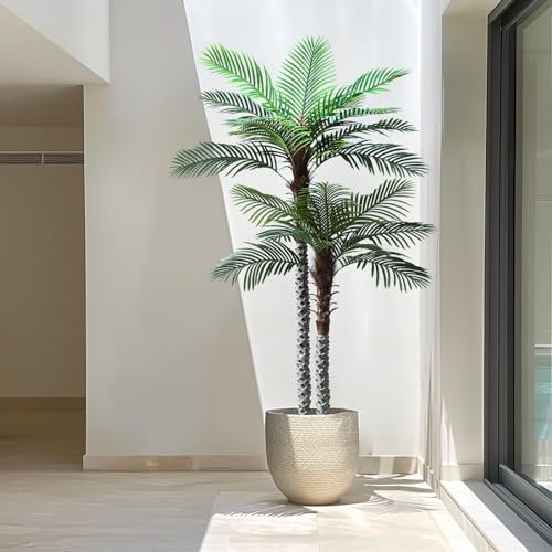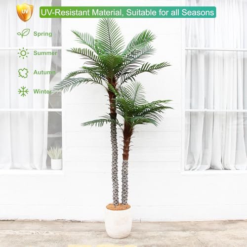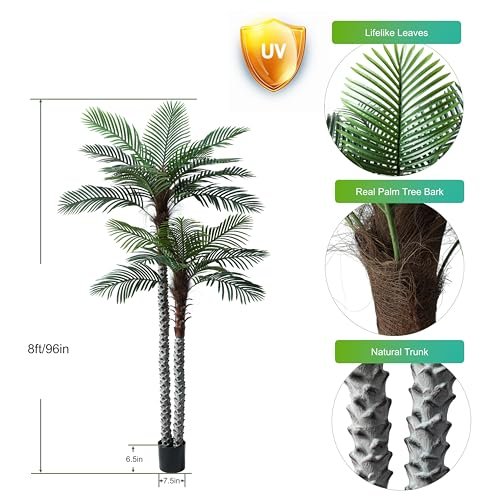 Nafresh 8ft Tall UV Resistant Faux Palm Tree, 96in Artificial Palm Tree Indoor Outdoor, Fake Tree with Real Bark and Realistic Leaves and for Home House Office Living Room Yard Patio.