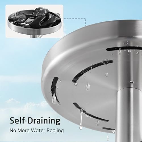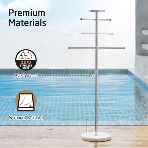 Natural Marble Outdoor Towel Rack with Weighted Base, KES 5-Feet Pool Towel Rack Outdoor for Hot Tub 18/8 Stainless Steel, Adjustable 3 Arms with Storage Tray, Brushed Finish OTR200-2