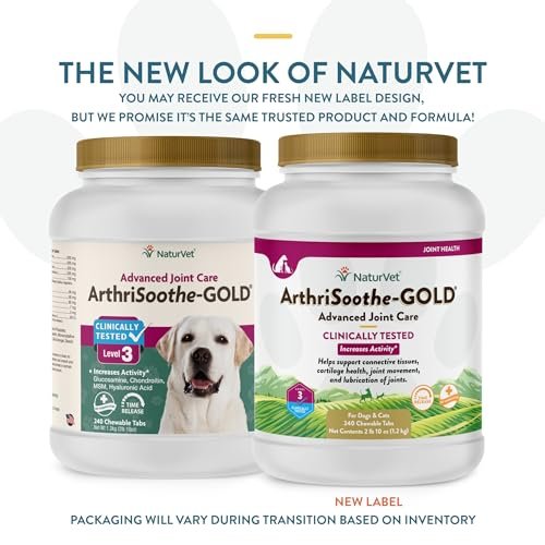NaturVet Clinically Tested ArthriSoothe-Gold Level 3 Advanced Joint Care for Dogs and Cats, 240 ct Time Release, ChewableTablets, Made in USA