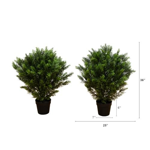 Nearly Natural 3ft Cedar Artificial Tree – UV Resistant, Realistic Greenery, Indoor/Outdoor Decor, Comes in Set of 2, Perfect for Home, Office, Patio Display