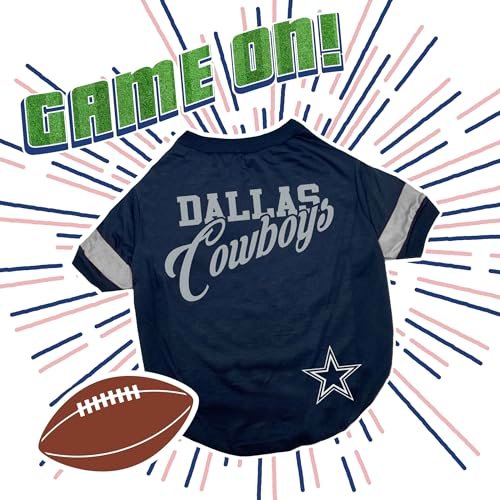NFL Dallas Cowboys T-Shirt for Dogs & Cats, Medium. Football Dog Shirt for NFL Team Fans. New & Updated Fashionable Stripe Design, Durable & Cute Sports PET TEE Shirt Outfit