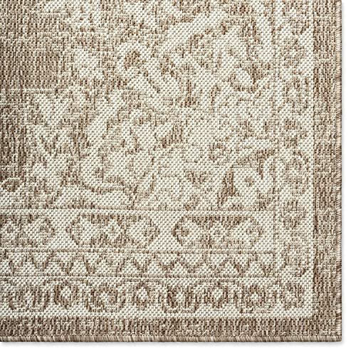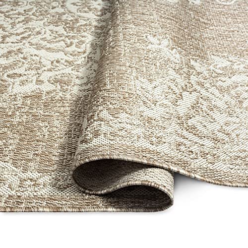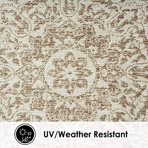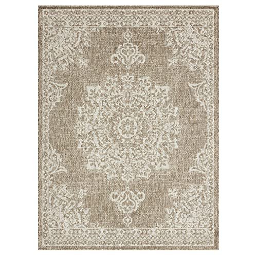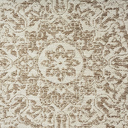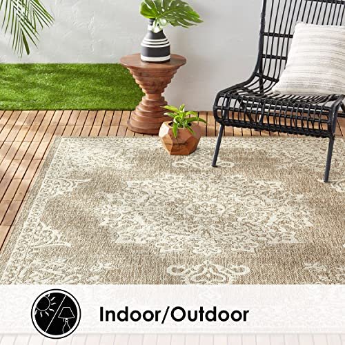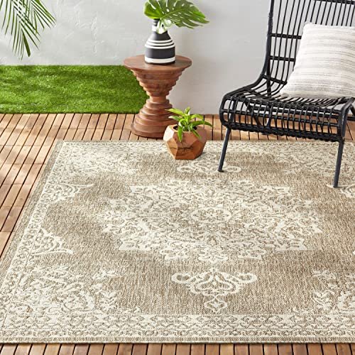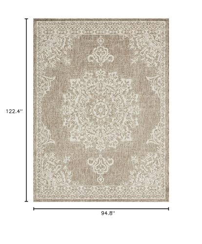 Nicole Miller New York Patio Country Azalea Transitional Medallion Indoor/Outdoor Area Rug, Taupe/Ivory , 7’9″x10’2″